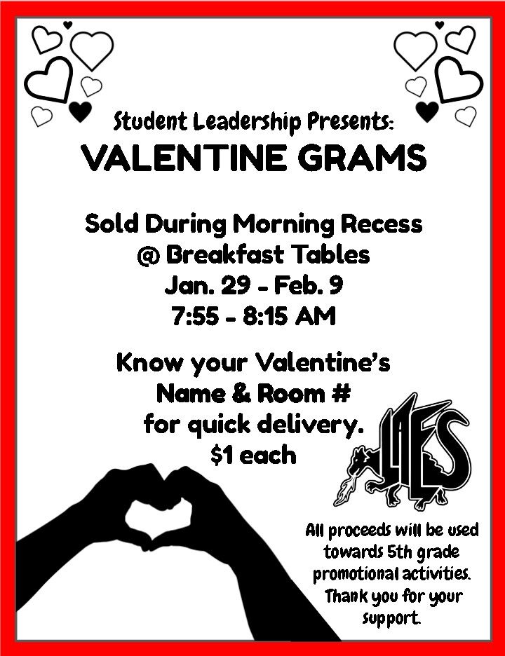 Just a reminder, tomorrow is the LAST DAY TO PURCHASE VALENTINE GRAMS!